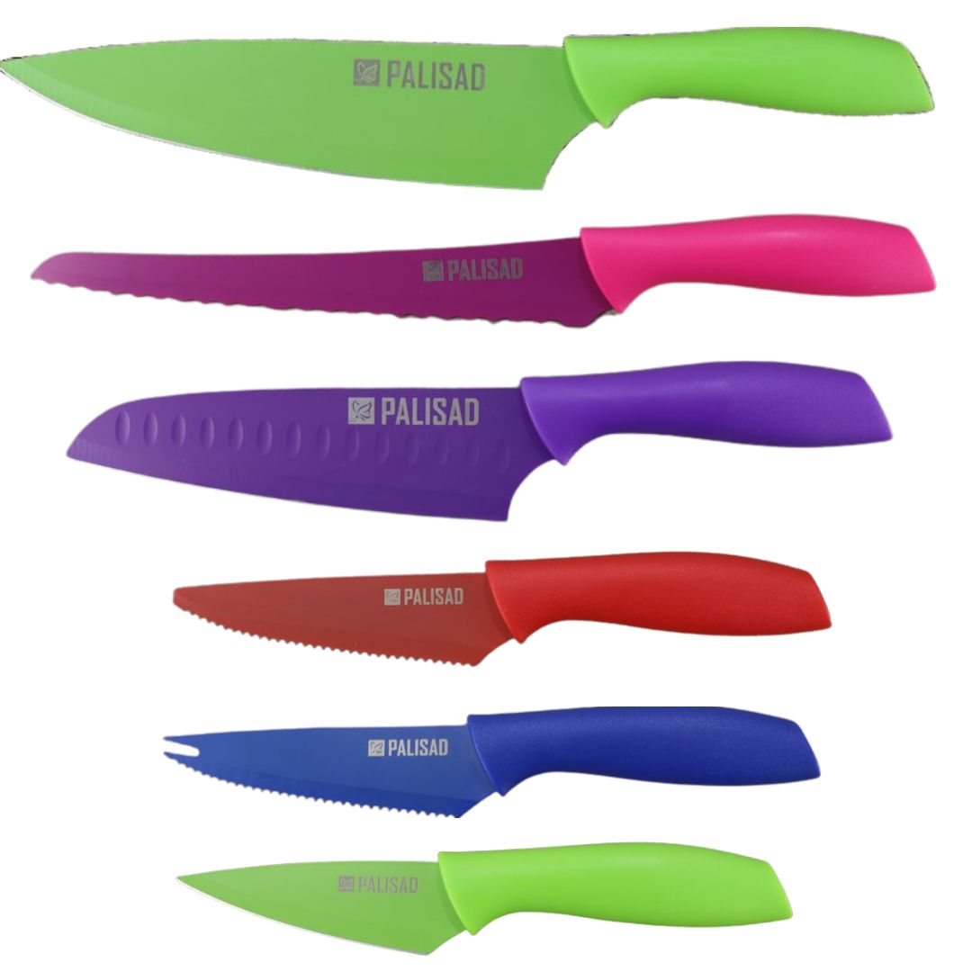 O Jogo de Facas 6 Peças é ideal para sua cozinha, possui cabos em diferentes cores, muito confortável para o manuseio. As Lâminas são produzidas em aço inox, tem maior durabilidade do fio devido ao tratamento térmico. Possui o cabo de polipropileno, podem ir à máquina de lavar louças facilitando o seu dia-a-dia.